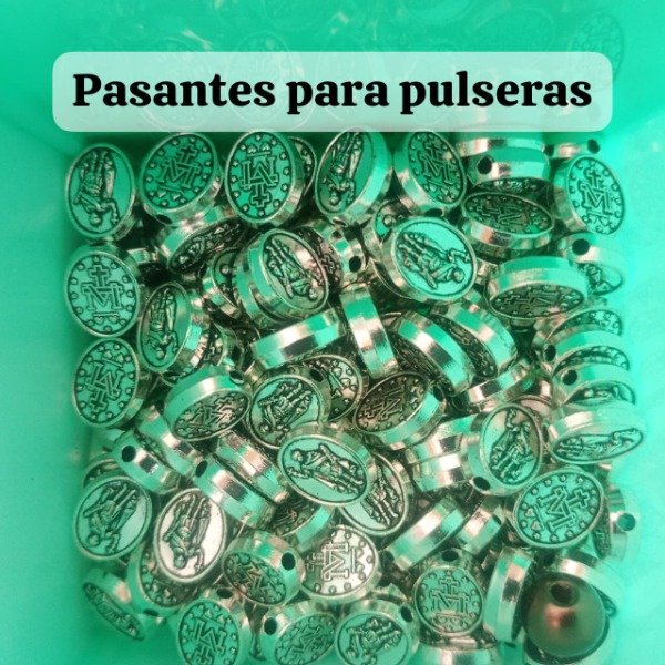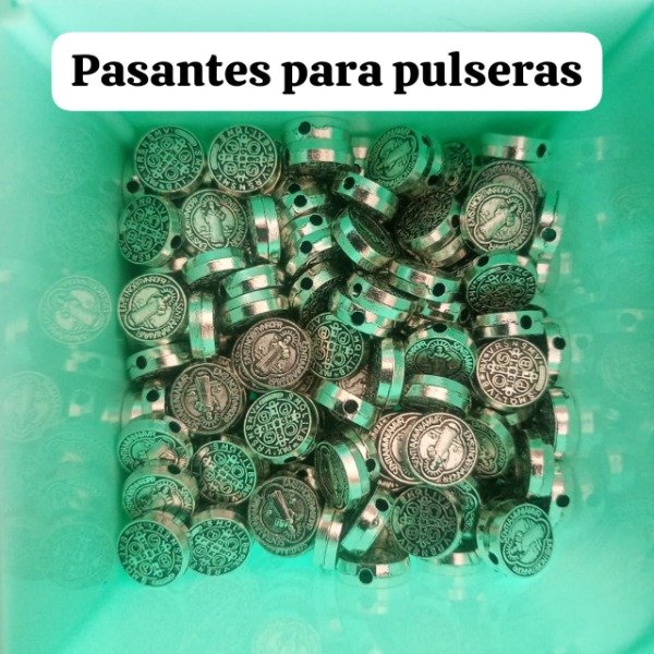 Pasante de metal con agujero para pasar el hilo de arriba hacia abajo. Sus imágenes son nítidas y claras. Disponibles: Luján. San Expedito y símbolo de la Medalla Milagrosa al dorso. Y cuerpo de San Benito con Cruz de San Benito al dorso. (Venta mayorista)