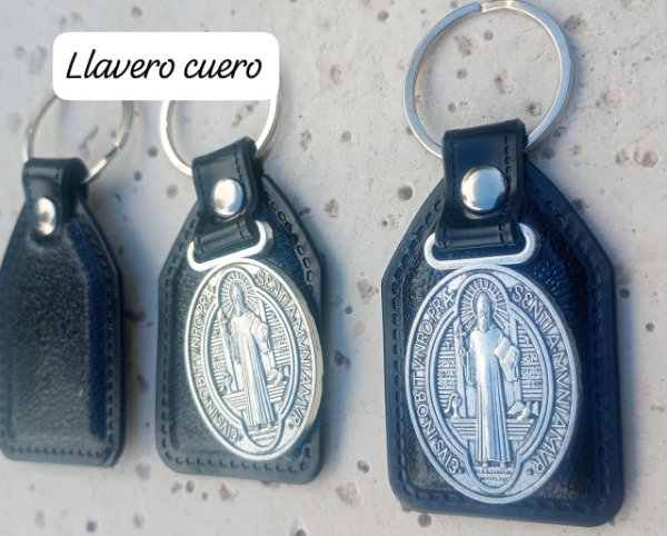 LLAVERO CUERO con medalla de color. O medalla plateada en el caso de San Benito