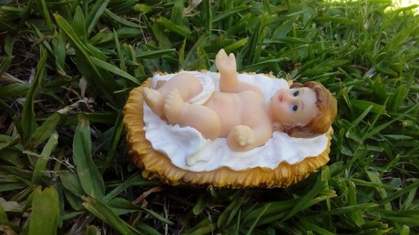 Niño Jesús en cuna, de resina